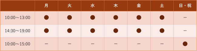 *矯正歯科治療日は9:00~18:00頃までの診療となります。